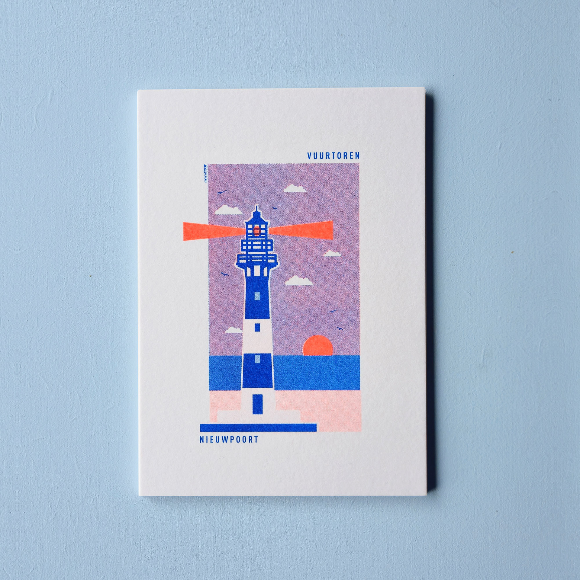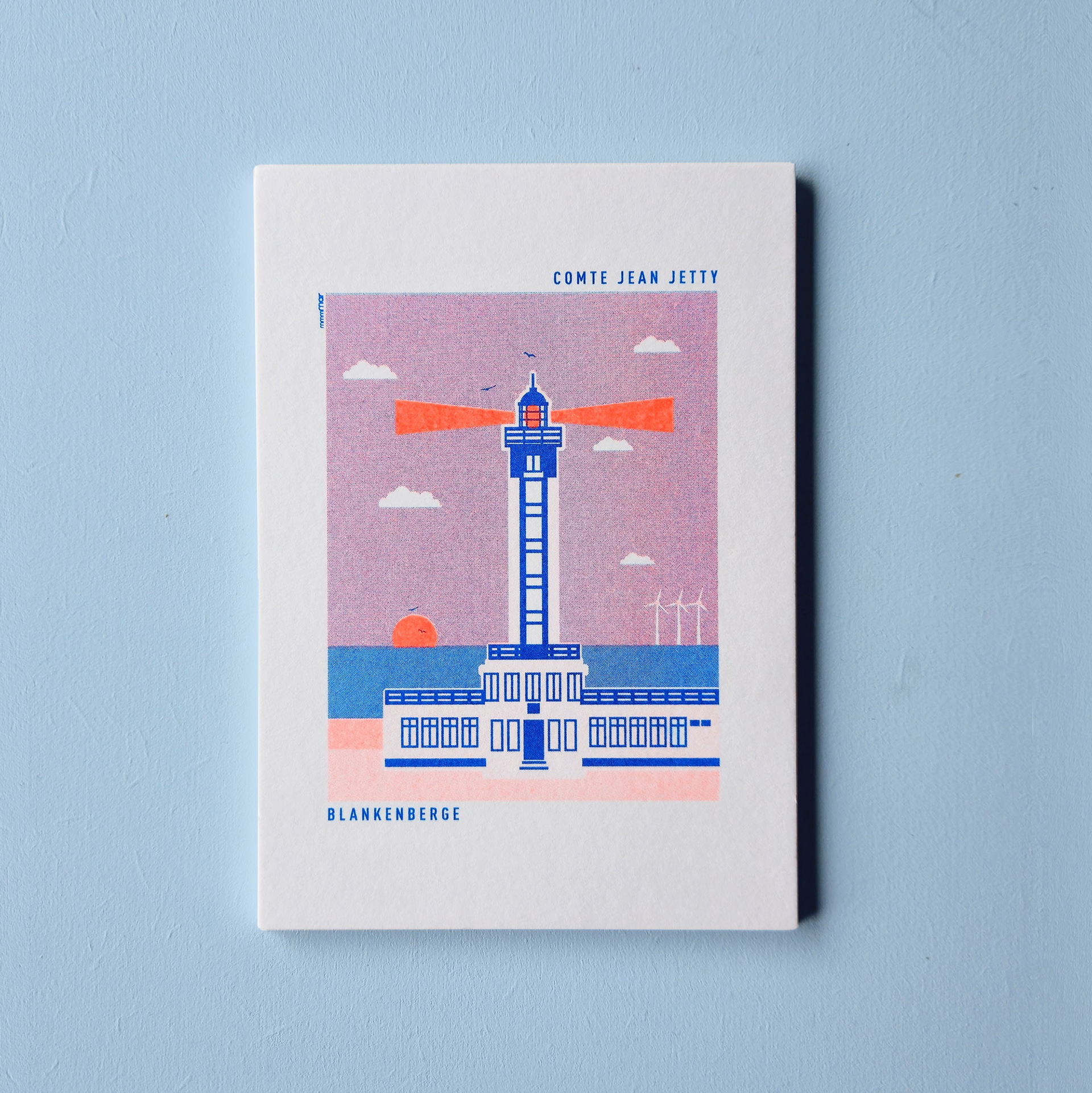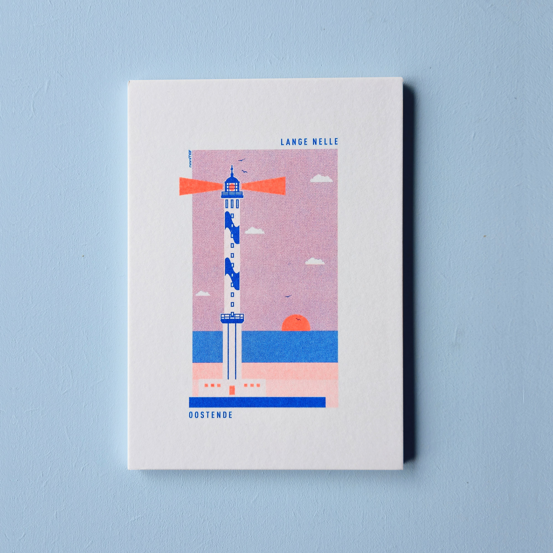 Postkaartjes vuurtorens België. De postkaartjes zijn geprint met een RISO printer.